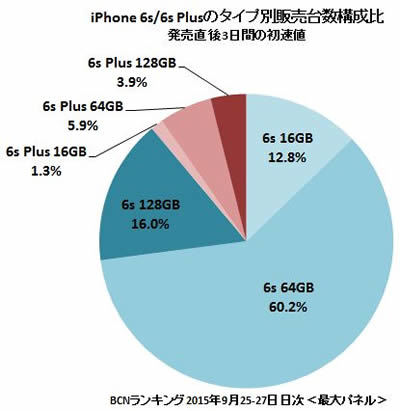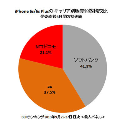 iPhone 6s/6s Plusの販売初速、6s 64GBが6割、キャリアはソフトバンクがトップ