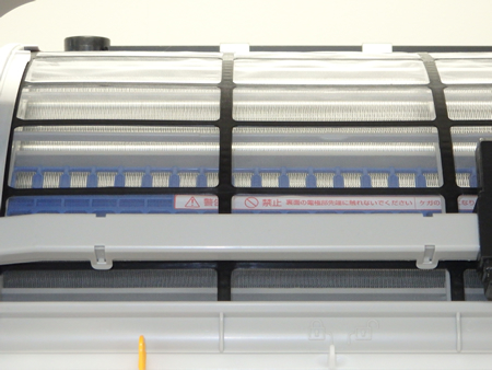 「マジック洗浄熱交換器」と称する熱交換器は、特殊樹脂コーティングが施されており、汚れ物質は水と一緒に流れる。水は、冷房シーズンの除湿や冷房運転で発生する結露した水を使うので、何もしなくても汚れ物質は自動的に室外に流れていく仕組みだ。