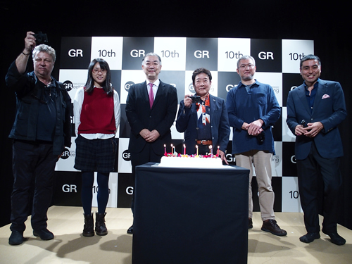 駆けつけた内外の写真家が、GR10周年のバースデーケーキを囲んで記念撮影