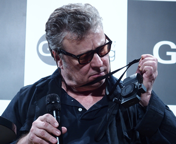 と記念イベントのトークショーで語る、ニューヨーク出身の写真家、ミシャ・アーウィットさん
