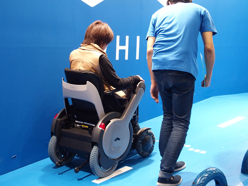 WHILLが出展した「WHILL Model A」。小回りが利き、走破性が高い電動車いす