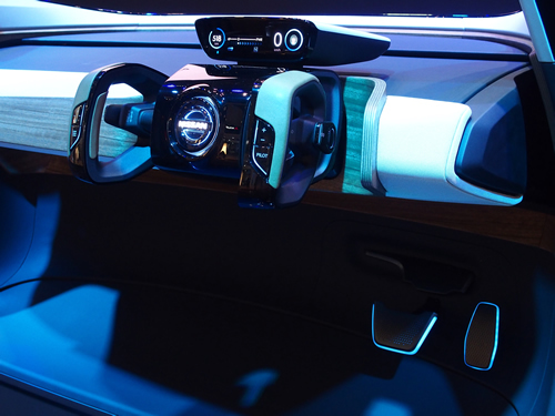 日産が出展した自動運転のコンセプトカー「IDSコンセプト」のダッシュボード部。自動と手動を簡単に切り替えられる