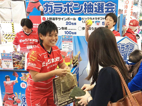 ビックカメラの「ビックカメラ女子ソフトボール高崎」が11月1日、第48回日本女子ソフトボールリーグ(一部)で優勝した。同社は8日、有楽町店やビックロ、新宿西口店で上野由岐子投手との記念撮影会や記念セールを開催した。