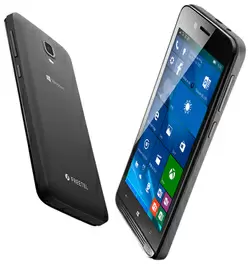 4.5インチの液晶ディスプレイを備えたWindows 10 Mobile搭載モデル。4コア1.1GHzのCPU、500万画素のリアカメラを搭載。SIMスロットを二つ備え、LTE回線を切り替えて利用できる。