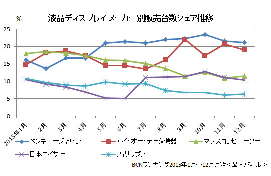 液晶ディスプレイ 2015年 年間機種別販売台数シェアランキング