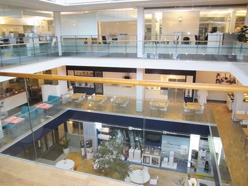 エレクトロラックス本社の中に入るとモダンな空間が広がる。