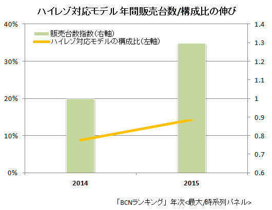 ソニーは、2013年秋に、ハイレゾ対応オーディオ機器を本格展開する方針を打ち出し、ラインアップの強化を始めた。2015年には、ハイレゾに対応するウォークマン「Aシリーズ/ZXシリーズ」の新製品とともに、ハイレゾに対応するヘッドホン「h.ear」シリーズを投入。ウォークマンの売れ筋は、以前と変わらず、スタンダードなSシリーズだが、ハイレゾ対応モデルの割合は3割弱に達し、2015年の携帯オーディオの年間ランキングでは、3位に、Aシリーズの「NW-A16」、21位に「NW-A25HN」が入った。今後、主力は、SシリーズからAシリーズへ切り替わるかもしれない。