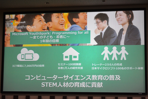 日本マイクロソフトは6月14日、NPO法人「CANVAS」(東京・台東区)とNPO法人「育て上げネット」(東京・立川市)と連携し、コンピュータサイエンス教育を受けにくい子どもや若者向けの施策「Microsoft YouthSpark: Programming for all ~全ての子ども・若者に~」を7月1日から始めると発表した。