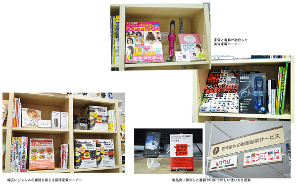 同じ売り場内に家電と書籍をレイアウトするのは、幅広い世代の関心をキャッチするためだ。例えば、調理家電コーナーにはレシピ集のような関連性の高いものだけでなく、健康やスポーツなど幅広いジャンルの書籍を並置。家電にあまり詳しくない世代のユーザーにも、接客の切り口が増えることで、より踏み込んだコミュニケーションを取ることができる。