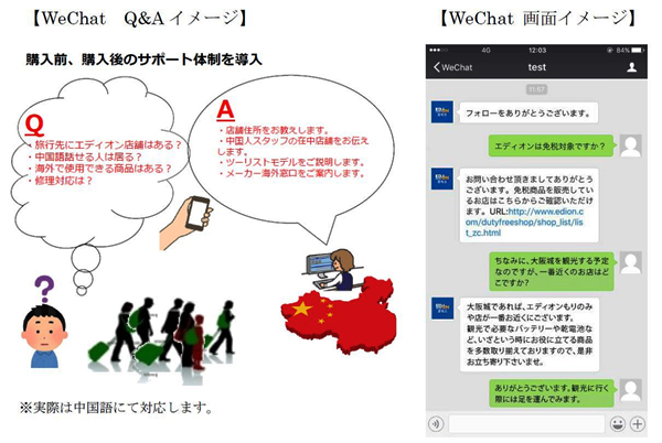 エディオンは6月24日、中国最大のSNS「WeChat」を活用し、訪日前後の中国人をサポートする家電量販店初の試みを7月1日から導入すると発表した。