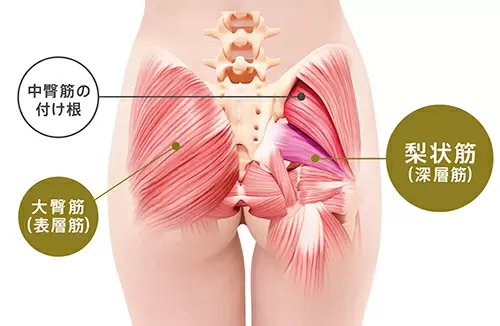 具体的には、おしりの表面の「大臀(だいでん)筋」をほぐすのはもちろん、その奥にある「中臀(ちゅうでん)筋」、さらに奥にある「梨状(りじょう)筋」までほぐすことで、腰が楽になるのだ。