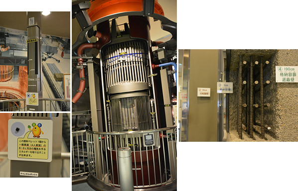 中央が原子炉で、左が燃料集合体、右が原子炉格納器