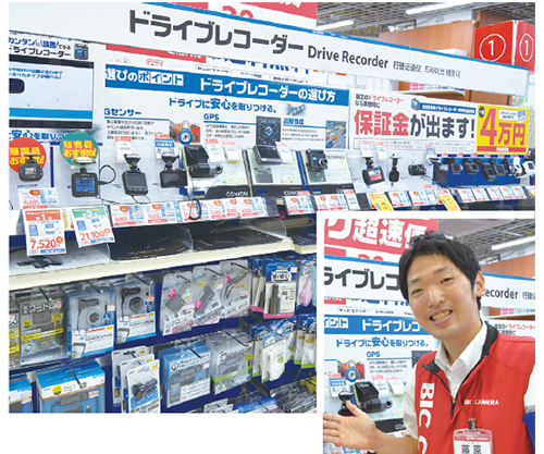 さらに、ドライブレコーダーの提案時には、活用の幅を広げるセット提案にも力を入れていると藤原主任は話す。バッテリアダプタなどがあれば、駐車中の様子を撮影できるからだ。適切なセット提案が客単価アップにつながる。(BCN・山下 彰子)