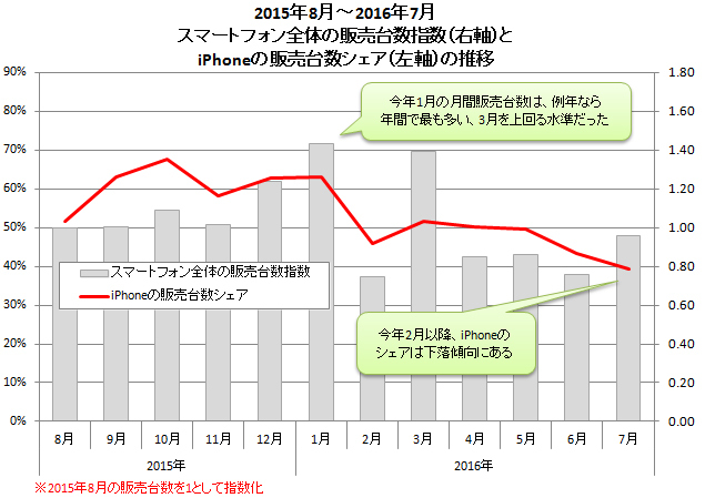 現行モデル「iPhone 6s」の売れ行き不振は、新機能の少なさや、過去最大のヒットとなった「iPhone 6」の反動に加え、割高感のある料金プランや、結果的に端末価格の高騰をもたらした販売方法の変化の影響も大きいだろう。