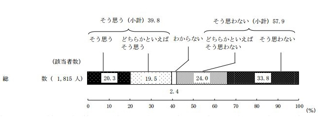 「クレジットカードを積極的に利用したいと思うか」とたずねると、「そう思う」「どちらかといえばそう思う」が合わせて39.8%であったのに対して、「どちらかといえばそう思わない」「そう思わない」が合わせて57.9%と、クレジットカードをあまり利用したくないとする回答が多かった。