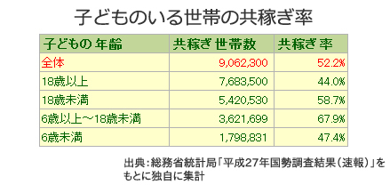 今や子どものいる世帯の半数以上が共稼ぎだ