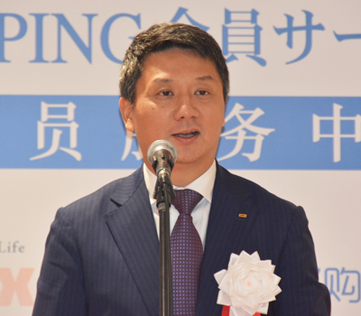 サービス開始を記念してあいさつするラオックスの羅怡文社長