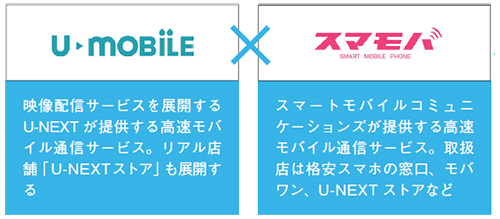 店内では「U-mobile」と「スマモバ」の二つのロゴを掲げ、2社が扱う端末とプランを提案する。店舗運営はスマートモバイルコミュニケーションズが担当し、ストアやブランド認知を上げるプロモーションはコンテンツ配信を行っているU-NEXT が担う。それぞれの強みを生かして運営する。