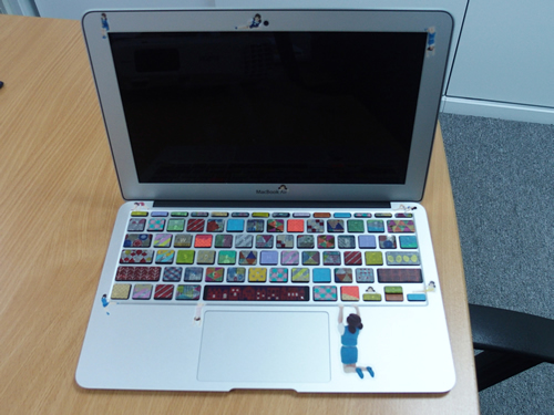 キングジム香港のKoさんは、Mac Book Airのキーボードにきれいにデコレーションを施した