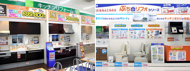 年末に向けた大掃除対策など、衣食住の暮らし方をテーマに、提案型の売り場作りを展開。また、キッチン・バス・トイレの空間全体のリフォームをパックにした「パックdeリフォ」を提供するほか、太陽光発電システム、オール電化を含めたリフォームの相談にも応じる。