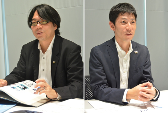 コミュニケーション部クリエイティブ課の高須泰行主幹とメジャーアプライアンス商品部エアコン商品課の宮代達主幹