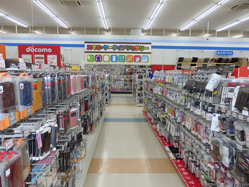 スマホコーナーではスマホ用ケースの向かいにイヤホンマイクなど通話機能を訴求