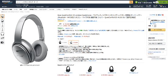ボースのノイズキャンセリングヘッドホン「QuietComfort 35 wireless headphones」の商品詳細ページ