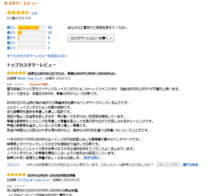 購入検討の際に役立つカスタマーレビュー。件数が多いほど、情報精度と信頼性は高くなる