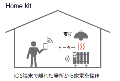 iOS端末で、離れた場所から家電を操作できるAppleの規格。Apple TVを経由すれば、家の外からでも屋内の家電を制御できる。端末自体がホームネットワークの中心になるので、ユーザーが中継機を設置する必要はない。また、Appleが承認した家電しか対応しない規格なので、自宅のネットワーク上で動作する製品かどうかを検討する手間がかからないメリットもある。