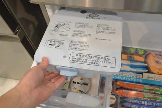 54Lを超えるビックフリーザーを採用するだけでなく、取り外し可能な自動製氷機も備える。