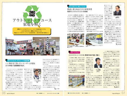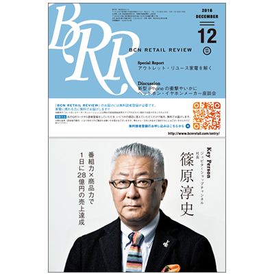 BCN(東京・千代田区、奥田喜久男会長兼社長)は、家電流通に携わる人に無料でお届けする専門紙『BCN RETAIL REVIEW』2016年12月号を11月28日に発行しました。ジュピターショップチャンネルの篠原淳史社長のインタビューや、特集「アウトレット・リユース家電を解く」などを掲載しています。