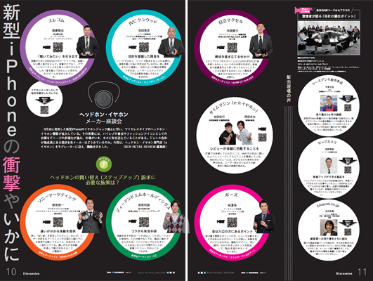 さらに、特別企画として、ヘッドホン・イヤホン専門店「e イヤホン」をモデレーターに迎え、国内外のヘッドホン・イヤホンメーカー6社にご参加いただき、座談会を開催。「買い替え(ステップアップ)訴求に必要な施策」「参入メーカーが増えた売り場の課題」などのテーマに沿って議論しました。
