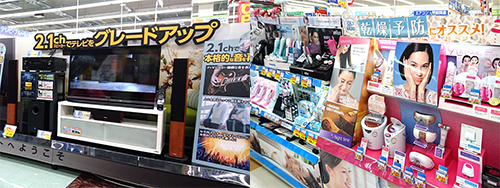総合家電専門店として、テレビ・レコーダーなどのAV機器、冷蔵庫・洗濯機・エアコンなどの生活家電、PC本体やプリンタなどのPC周辺機器、電池・管球・プリンタインクなどの最寄品を取り扱う。