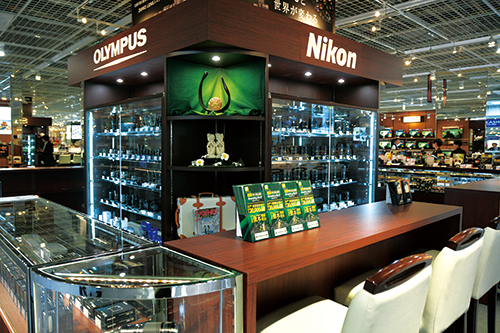Concept LABI TOKYO でも展開した「レンズバー」をさらに強化。カメラメーカー各社のレンズを多数取り揃え、持ち込んだカメラに装着して試し撮りができる。さらにカウンターを設け、対面で接客、提案を行う。