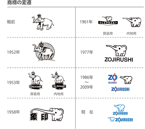 ただ、表舞台から姿を消した時も。同社は大証二部に上場した86年、ブランドイメージの一新を計画。今の「ZOJIRUSHI」ロゴを制定し、先進性や技術力を強調するために製品からゾウのマークを外した。