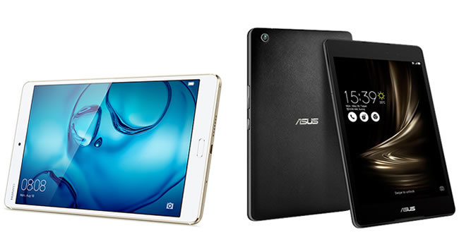 (左から、ファーウェイの「HUAWEI MediaPad M3」、ASUSの「ASUS ZenPad 3 8.0 (Z581KL)」)