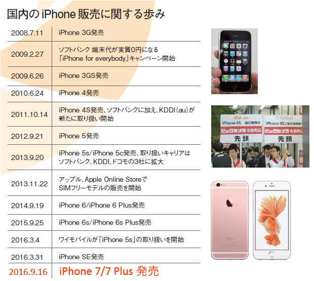 日本での販売開始は08年。7月11日に「iPhone 3GS」を発売し、10年6月24日に発売した「iPhone 4」はロングセラーになった。