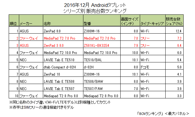 今後、用途や利用シーンに特化した2台目ニーズはますます高まると思われる。大手キャリアより通信料金が安いMVNOの浸透を受け、SIMフリーモデルも伸びている。成長途上にあるこれらのニーズを掴み、タブレット市場をけん引し続けるASUSに2017年も注目だ。