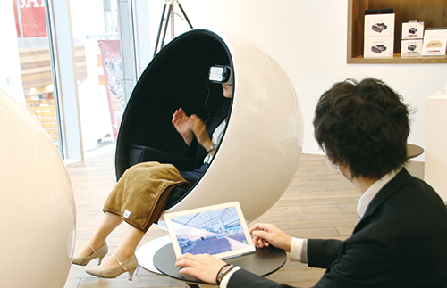 KDDIが昨年から掲げている「ライフデザイン企業」を実践するセレクトアイテムエリアを設置。1 階では直営店で初めてキッチン・ダイニングの生活雑貨を取り扱い、2階には復興支援展示コーナーを用意した。また、ワークショップを開催できるスペースを設け、通信領域以外の顧客との接点を増やすことで、身近に感じてもらい、立ち寄りやすい店舗を目指す。