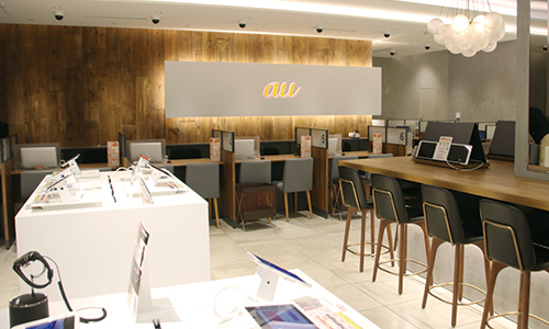 KDDI直営店初の試み キャリア色薄めカフェ前面に