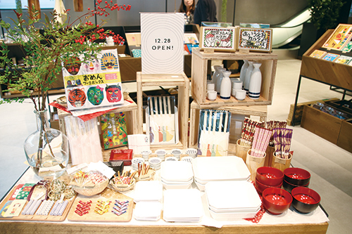セレクトアイテムコーナーの棚には徳利や和食器も並ぶ
