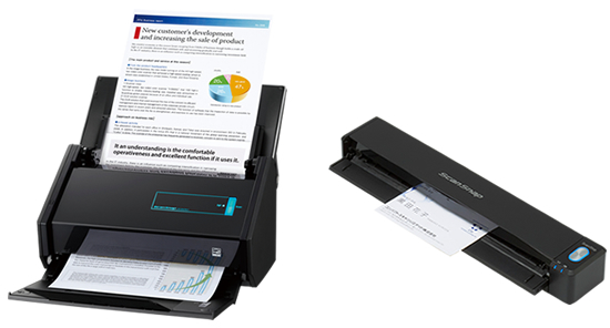 PFUの主力製品「ScanSnap iX500」(左)と、モバイルスキャナ「ScanSnap iX100」