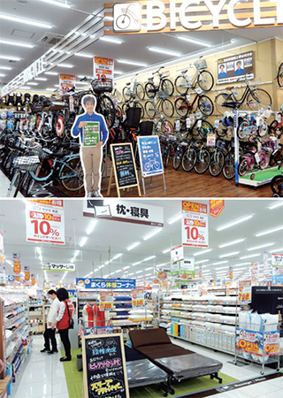 事前の調査で、通勤・通学や買い物での自転車利用者が多いことが想定されたため、ビックカメラやいくつかのコジマ郊外店で販売実績のある自転車の取り扱いを決定。自転車整備士資格保有者が2名在籍し、購入後の点検・修理にも対応する。