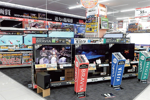 「体感・体験できる」をテーマとした売り場づくりに注力。例えば、テレビ売り場では画質が見比べられるだけでなく、各機種のリモコンを目立つ場所に設置し、実際の操作性や、説明書を読まなければ存在に気づかない機能なども購入前に試せるようにした。