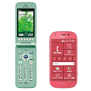 最新モデルの「らくらくホン F-02J」(左)と「らくらくスマートフォン4」