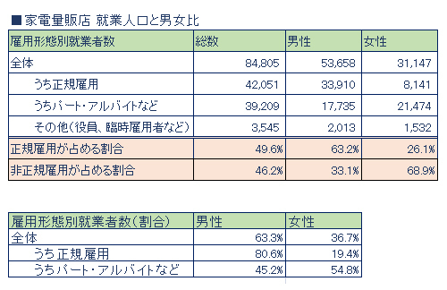 家電量販店の就業人口は全国約8万人、小売業の1%強