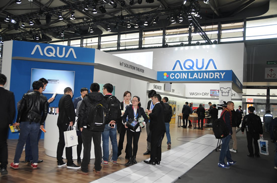 【中国・上海発】ハイアールグループの日本法人であるアクアは、中国・上海で3月9日から11日まで開催している中国家電世界博覧「Appliance & Electronics World Expo 2017(AWE2017)」のハイアール展示エリア内で、業務用洗濯機を使ったITランドリーシステムを展示した。アクアとして海外の展示会に出展するのは今回が初めて。