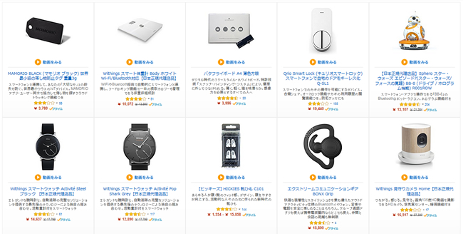 ストアの商品一覧ページを見れば、その意図は一目瞭然だ。通常ストアではカテゴリに分かれて商品が並んでいるが、「Amazon Launchpad」では、家電の隣に衣類、上には文具、といった具合に各ジャンルの商品が混在している(カテゴリ別での表示も可能)。また、一覧ページ内で商品の動画に直接アクセスできるのも「Amazon Launchpad」ならではだ。