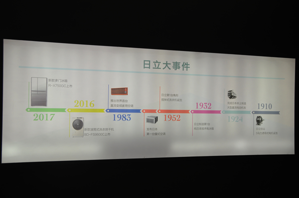 品質や安心を訴求するために「日立大事件」と題した年表を作成。1910年の国産初の5馬力モーターや、1924年の国産初の電気機関車「ED15形」の開発・製造から始まり、家電製品にもその技術力が継承されていることを訴えた。