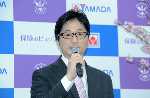 保険のビュッフェとの業務提携について語るヤマダ電機の取締役兼執行役員の飯塚裕恭専務